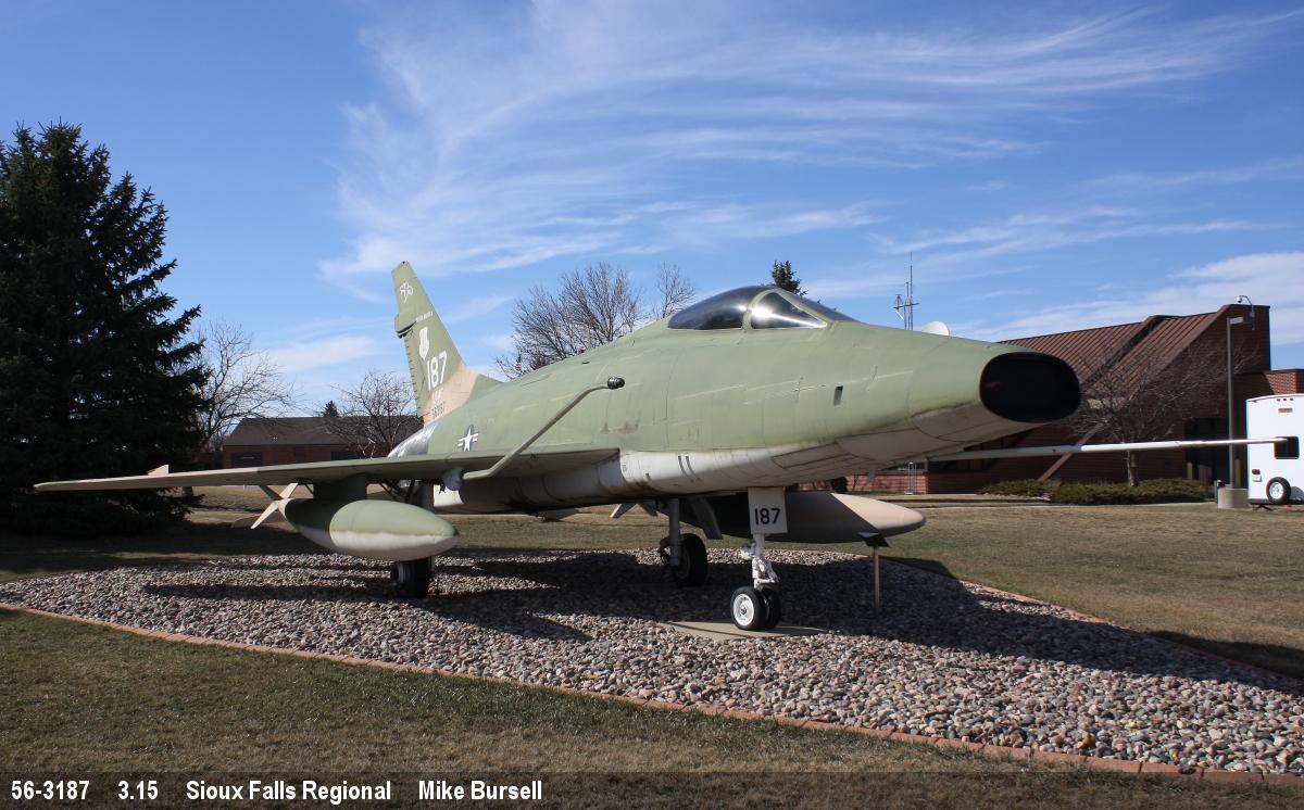 | 56-3187 | NA Super Sabre F-100D | 100, ex USAF | Preserved, outside | Sep 2025 | |