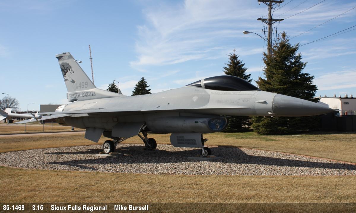 | 85-1469 | GD Fighting Falcon F-16C | Ex USAF, SD ANG marks | Preserved, outside | Sep 2025 |